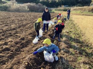 この日は、冬にも関わらず温かい気候に恵まれて9時半頃から約1時間たくさんのじゃがいもを掘りたくさんのお土産をいただきました。